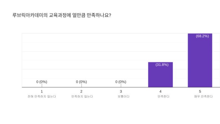 루브릭아카데미 재원생 대상으로 진행한 교육과정 만족도 설문 결과입니다.