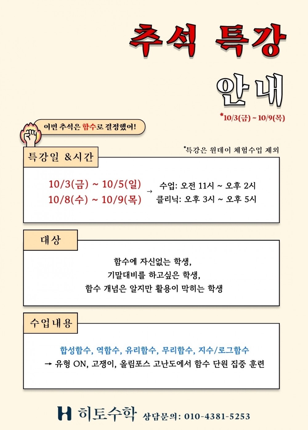 어설픈(?) 선행과 비어 있는 개념을 누구보다 많이 봐 왔기에 어떻게 가르쳐야 되는지 잘 아는 <히토수학>입니다