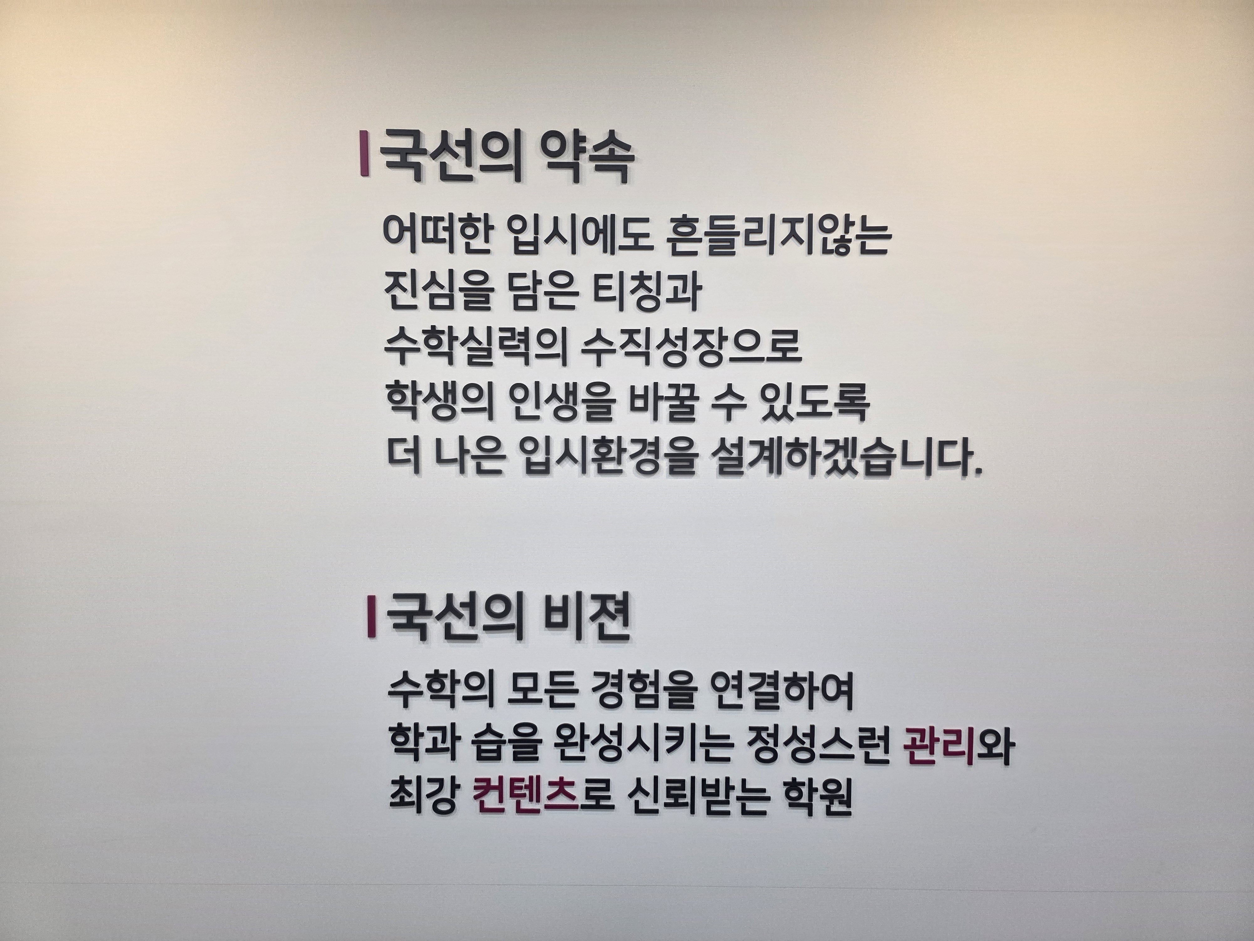 국선수학 중등관은 아이를 앞에서 끌고 가는 학원이 아니라, 옆에서 속도를 맞추며 끝까지 함께 걷는 학원이었다. 수학이 막막해진 순간, 다시 시작할 수 있는 구조가 필요하다면 국선수학 중등관은 그 출발점이 되어줄 수 있을 것이라 생각된다.