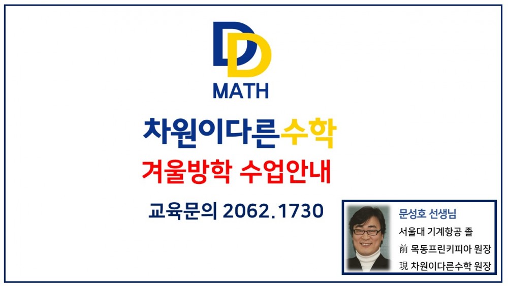 1학기 수업안내 페이지 정보 작성자 차원이다른수학학원 댓글 0건 조회 4,016회 작성일 24-02-28 17:33 본문 학원정보 차원이다른수학 02-2062-1730 전화문의 위치 서울특별시 양천구 목동서로 67 610호 (목동 우성에펠타운) 대상 중등 고등 과목 수학 수업목적 내신/심화/선행 수능 지도보기 관심학원 담기 목록 이전글중등부/고등부 중간고사 내신대비반 개강! 24.03.04 다음글[조이샘 영문법] 제2관 5단지 목동트윈빌 오픈 ★ 4주 무료 수강 이벤트 24.02.27 댓글목록 댓글목록 등록된 댓글이 없습니다.