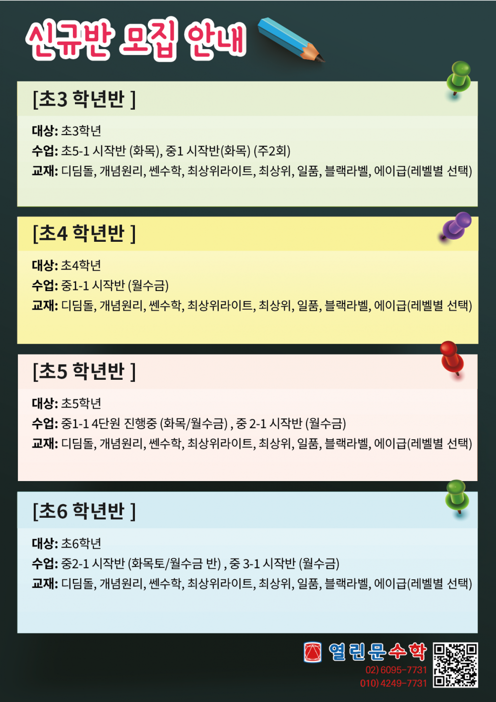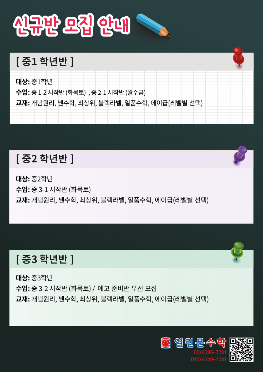 열린문수학 7월 신규반 시간표 안내 (VER. 0619)