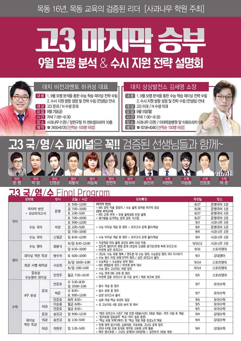 사과나무교육 수시 설명회 및 고3 파이널/특강 안내