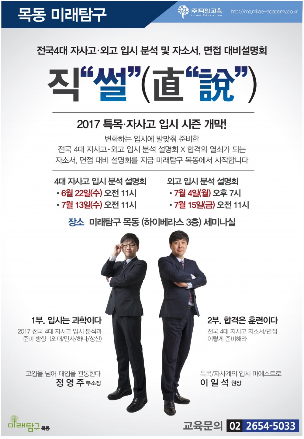[미래탐구 중등관] 직"썰"- 2017특목/자사입시 분석&자소서/면접 전략 설명회