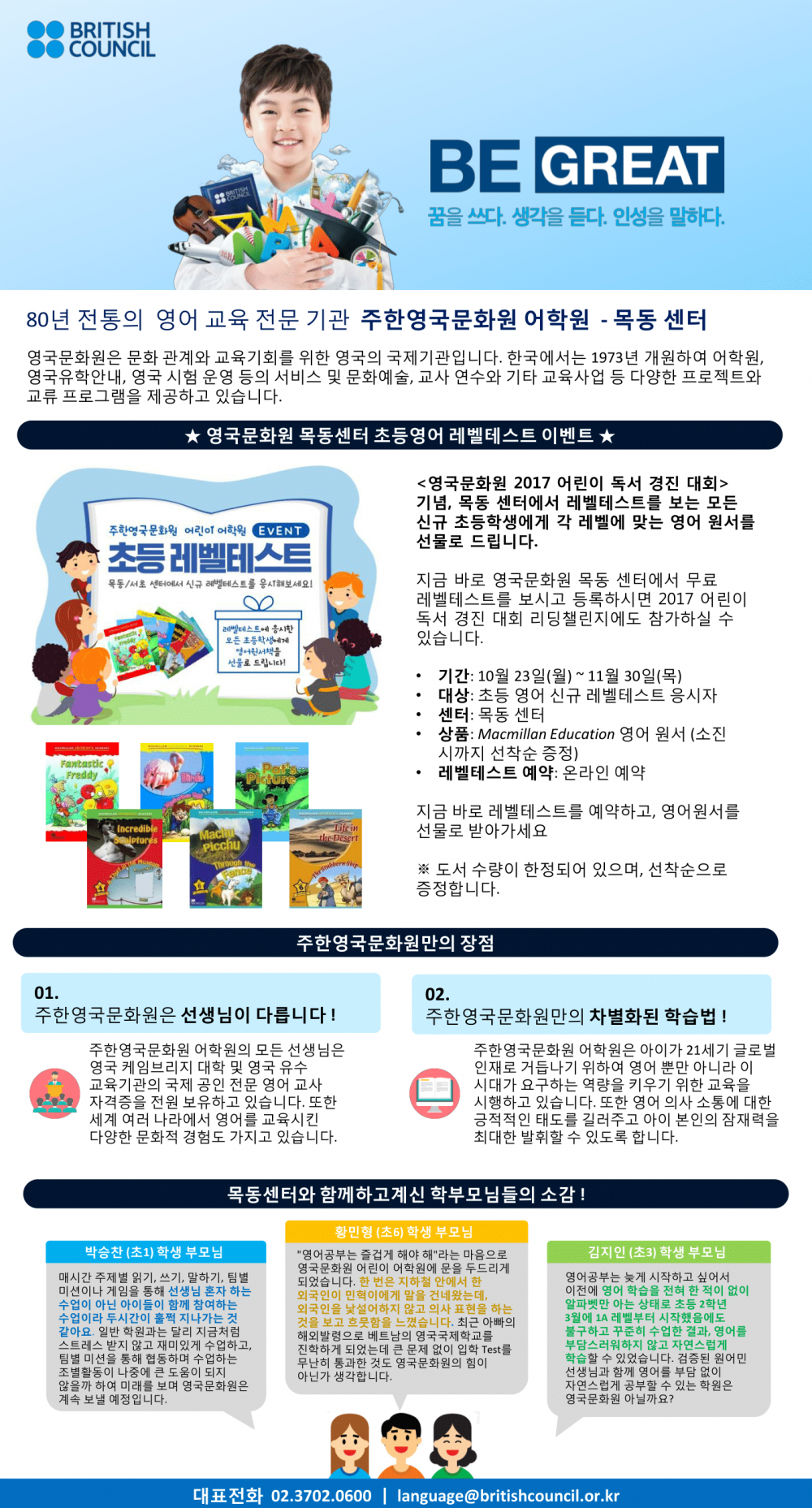 [주한영국문화원 목동센터] 초등영어 레벨테스트 이벤트 !