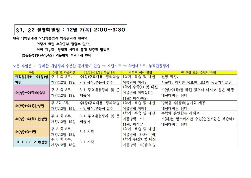 [백년대계탑학원](현)중1,중2 겨울방학 수학program 페이지 정보 작성자 백년대계탑학원 댓글 0건 조회 4,680회 작성일 17-11-07 12:59 본문 학원정보 백년대계탑학원 02-2654-3030 전화문의 위치 양천구 목동서로 61 양지빌딩 4층 대상 중등 고등 과목 수학 국어 수업목적 내신/심화/선행 수능 인강 지도보기 관심학원 담기 목록 이전글[대치명인학원 목동 11월 설명회 일정 안내] 17.11.07 다음글수학도서관 예비중1 반편성 모의고사 17.11.06 댓글목록 댓글목록 등록된 댓글이 없습니다.