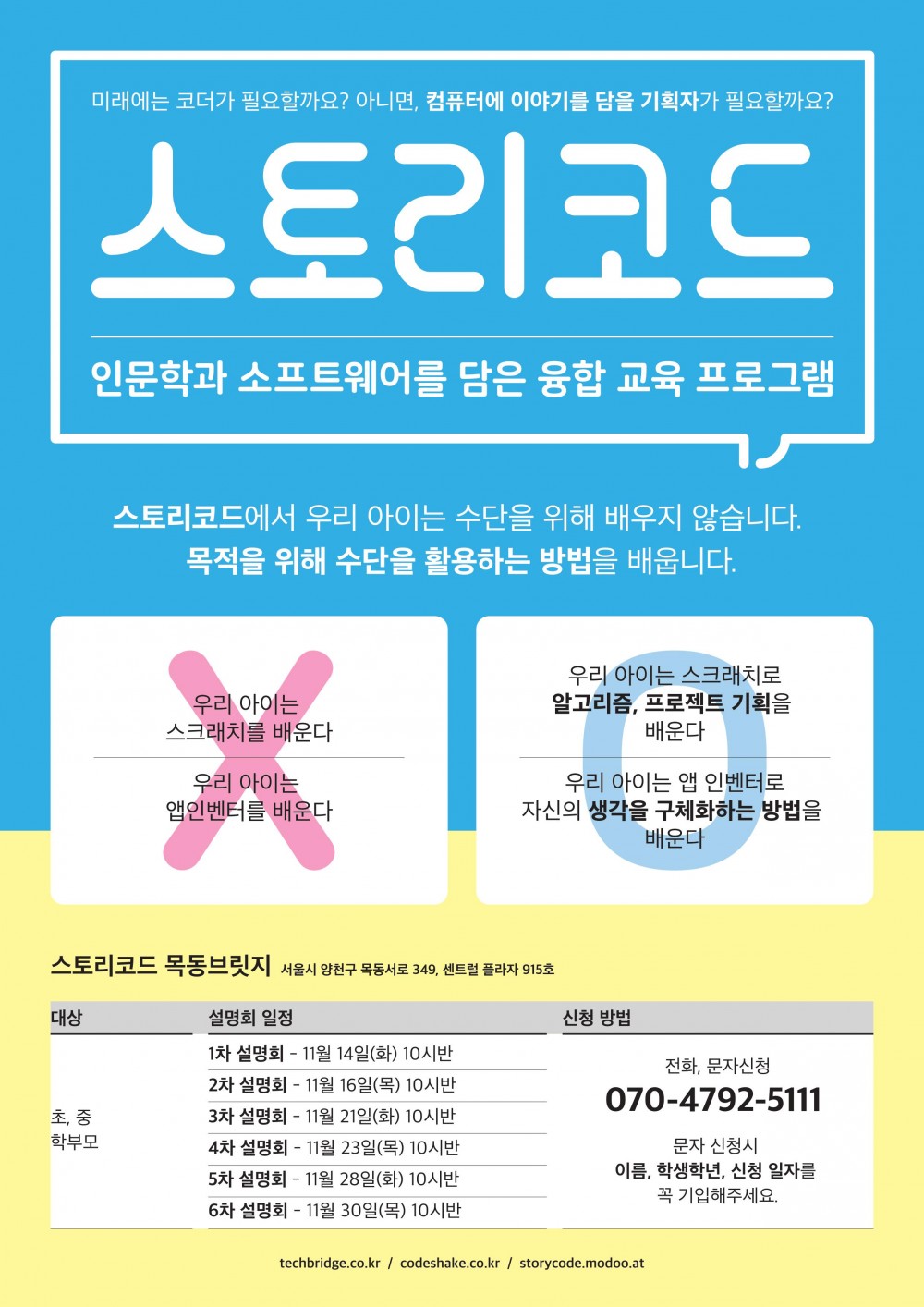 [스토리코드] 학부모 설명회 페이지 정보 작성자 스토리코드 댓글 0건 조회 5,293회 작성일 17-11-12 16:11 본문 학원정보 스토리코드 070-4792-5111 전화문의 위치 서울시 양천구 목동서로 349 센트럴프라자 915호 대상 초등 중등 과목 기타 수업목적 영재원/국제중 영재/특목/자율고 유학 기타 지도보기 관심학원 담기 목록 이전글리더십은 타고난 천성인 것 만은 아니다. 17.11.13 다음글중1학년/2학년 기말고사 대비반 모집-하이스트 엘란프렙 17.11.11 댓글목록 댓글목록 등록된 댓글이 없습니다.