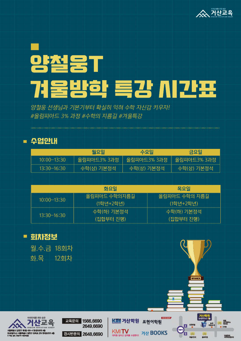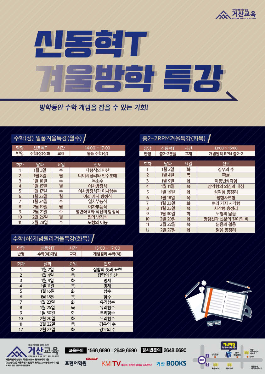 [거산학원] 알찬 겨울방학 특강 총정리(학년별)