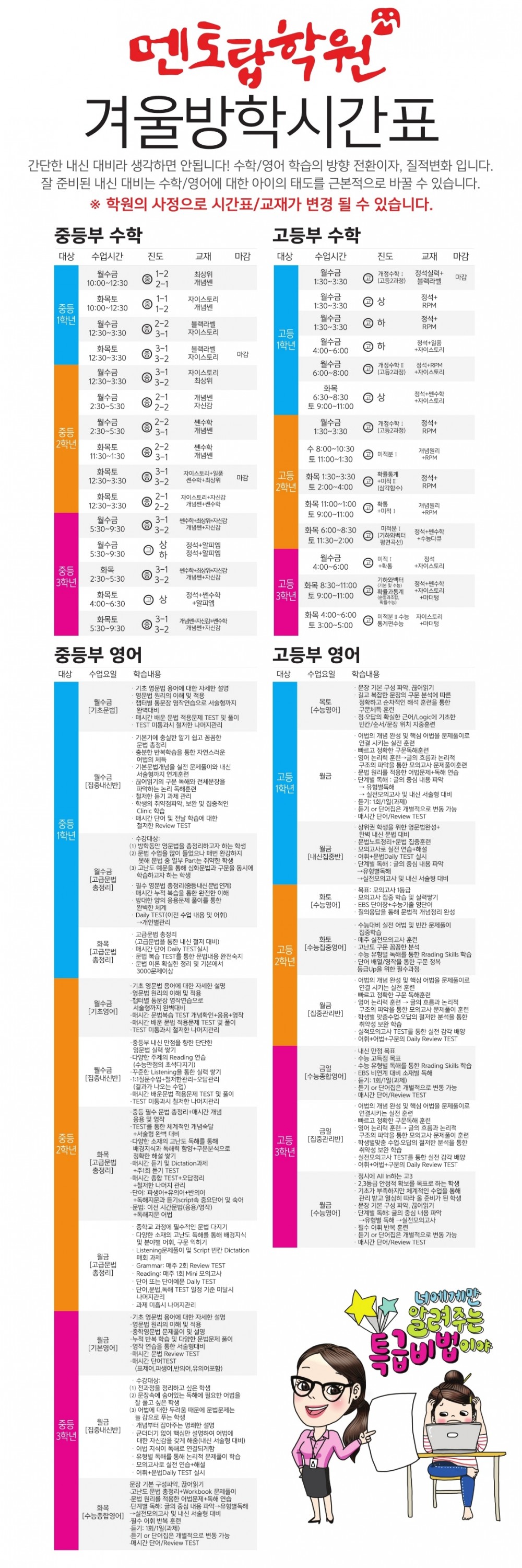 << 멘토탑학원 >> - 어떤 아이도 자신 있다!!! -영/수파르타/방학시간표안내