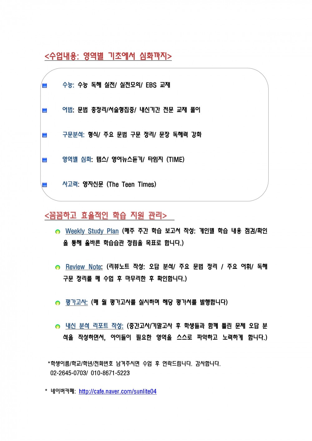 수업목적 영재/특목/자율고 내신/심화/선행 수능