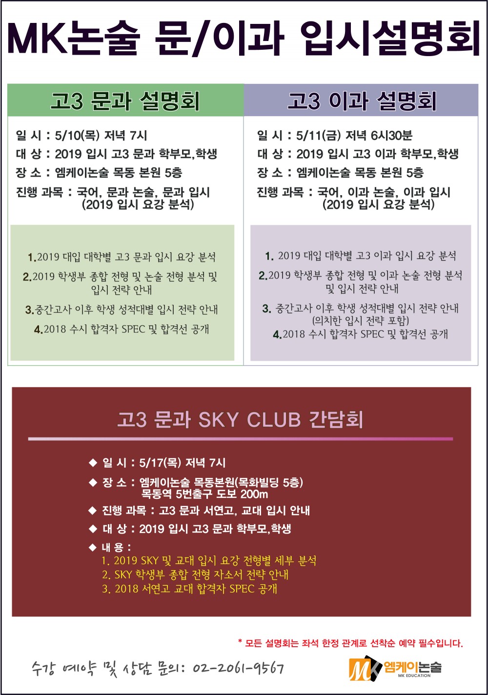 [MK논술] 5월 입시설명회 안내 페이지 정보 작성자 MK논술 댓글 0건 조회 4,923회 작성일 18-03-24 16:34 본문 학원정보 MK논술 02-2061-9567 전화문의 위치 양천구 목1동 408-115 목화빌딩 5층 대상 고등 과목 기타 수업목적 내신/심화/선행 수능 인문계비교과 자연계비교과 인강 기타 지도보기 관심학원 담기 목록 이전글▶ 4월은 교내 대회의 달! 교내 대회 준비는 미래비전과 함께 하세요◀ 18.03.24 다음글열정과신념 설명회 18.03.24 댓글목록 댓글목록 등록된 댓글이 없습니다.