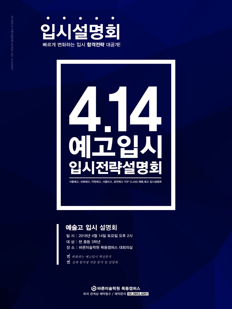 예중예고입시전문미술학원 바른미술학원 예고입시설명회