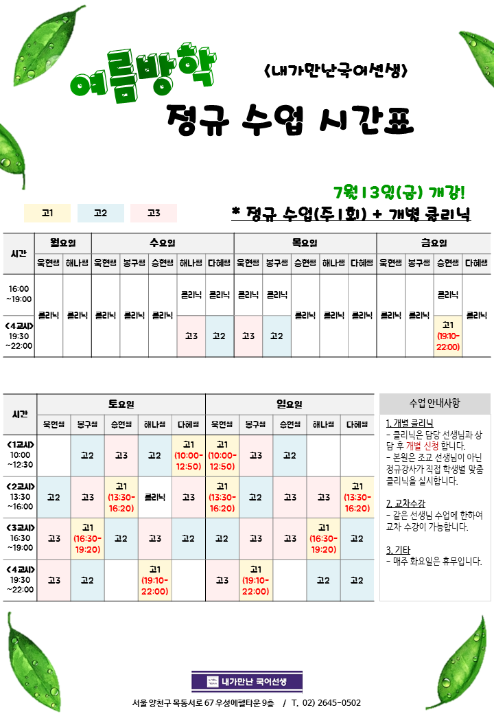 [내가만난국어선생] 7/13(금) 여름방학 정규수업 개강!