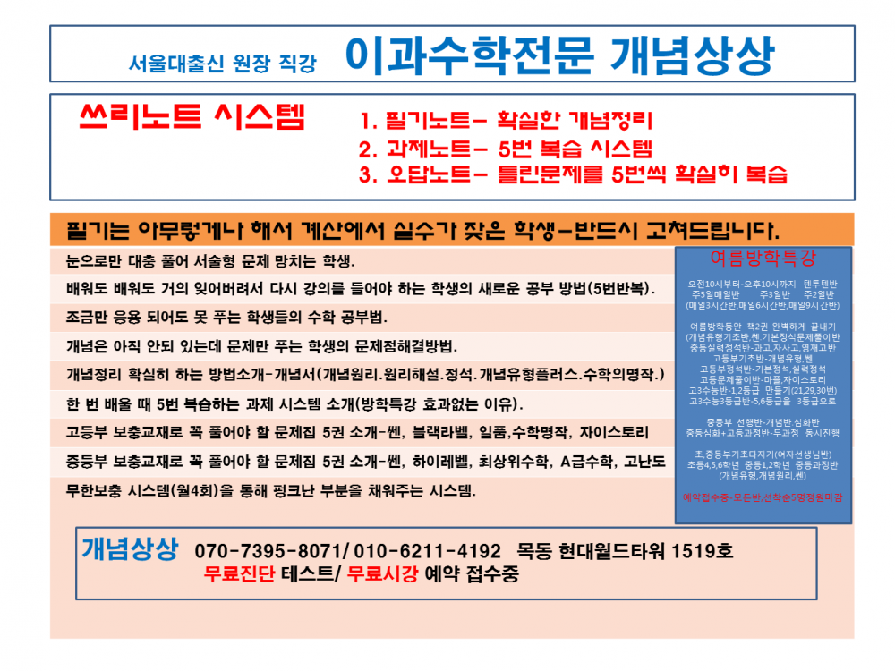 개념상상수학 여름방학특강 (탠투탠 ) 오전10시 부터 오후10시