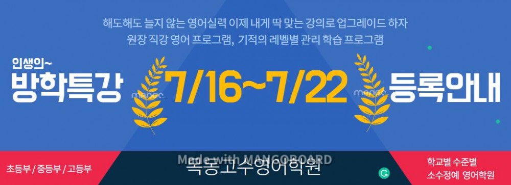 [여름 방학 등록 및 레벨테스트 기간 안내]