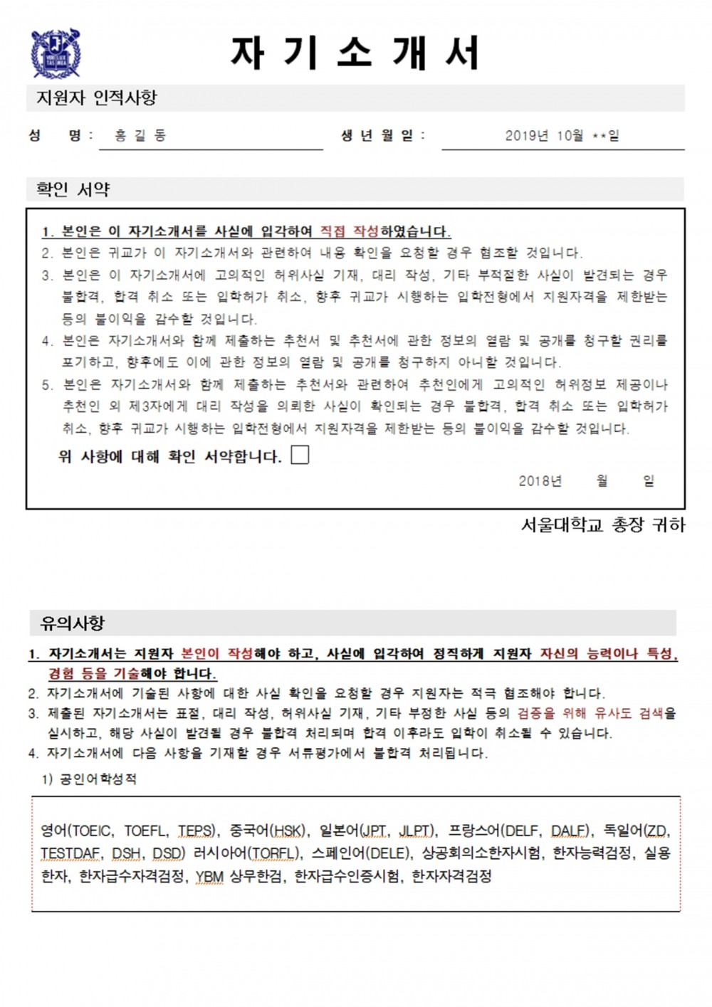 ***** [ 서 울 대 학 교 ] 자기 소개서 파헤치기*****
