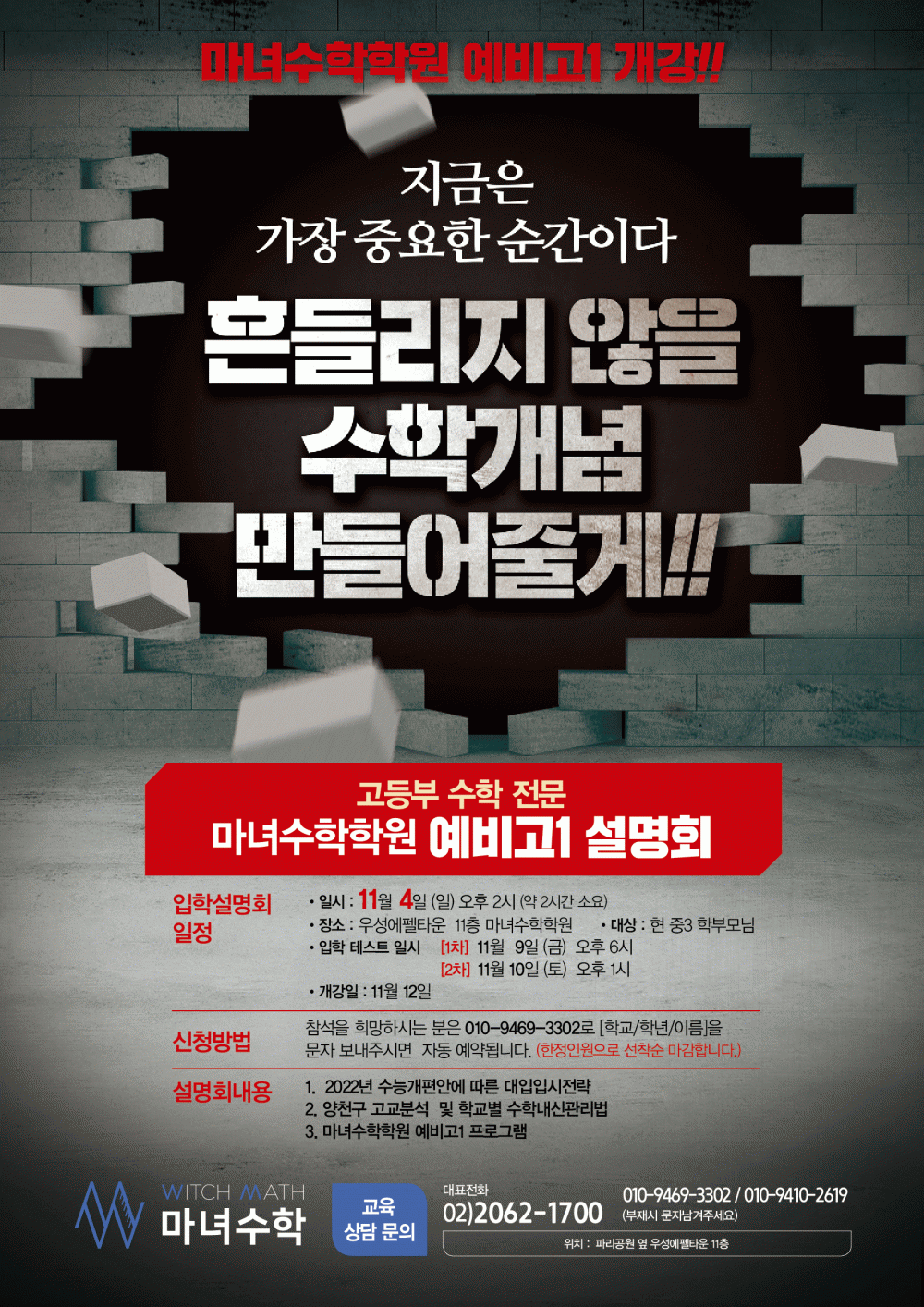 11.4 (일) 오후 2시 고등부 수학 전문학원 마녀수학 설명회가 있습니다. ^^