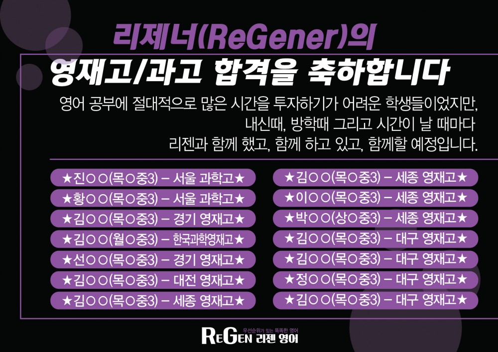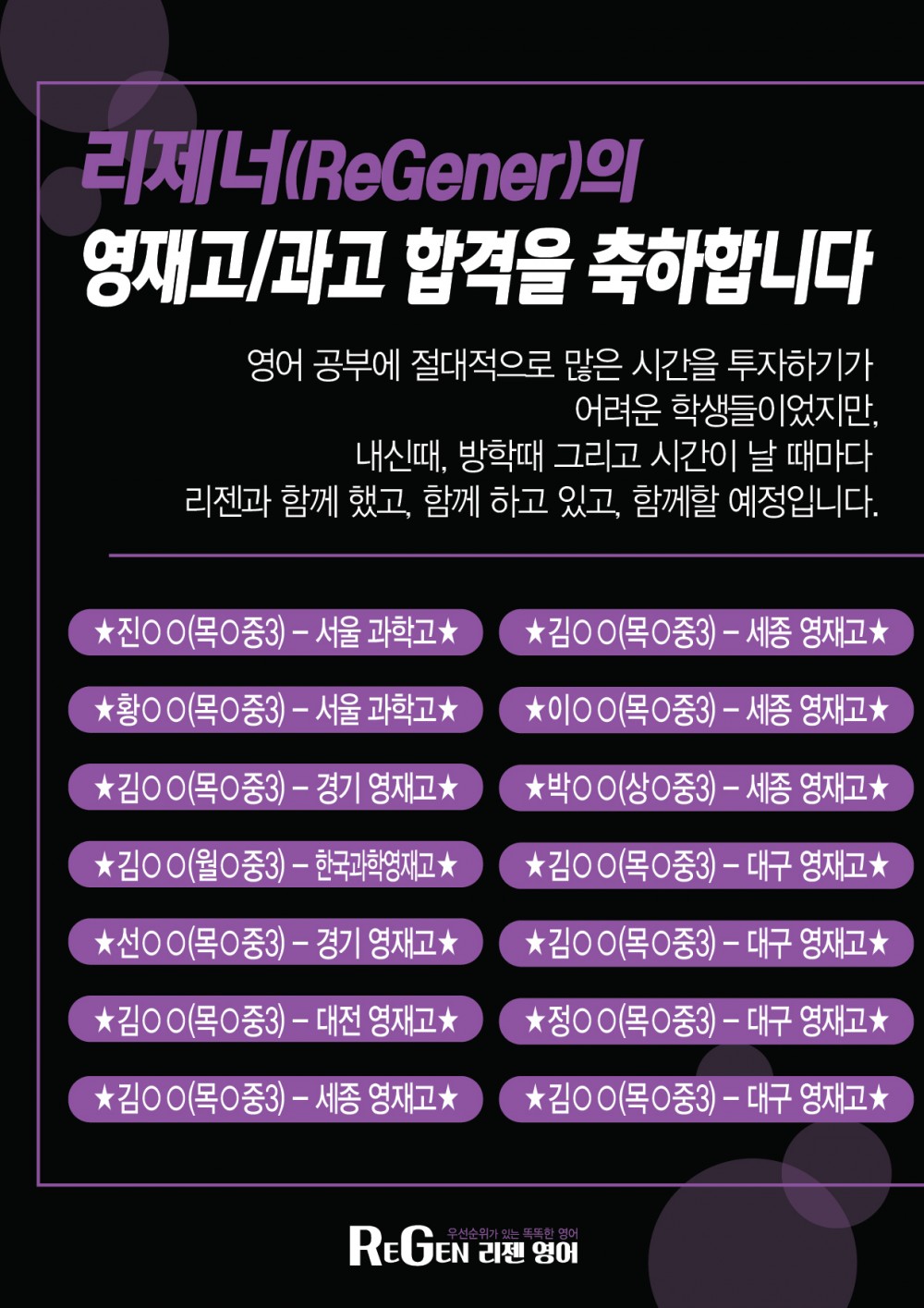 ★★★[리젠 영어] ★★★ 영재고/과고 합격을 축하합니다.