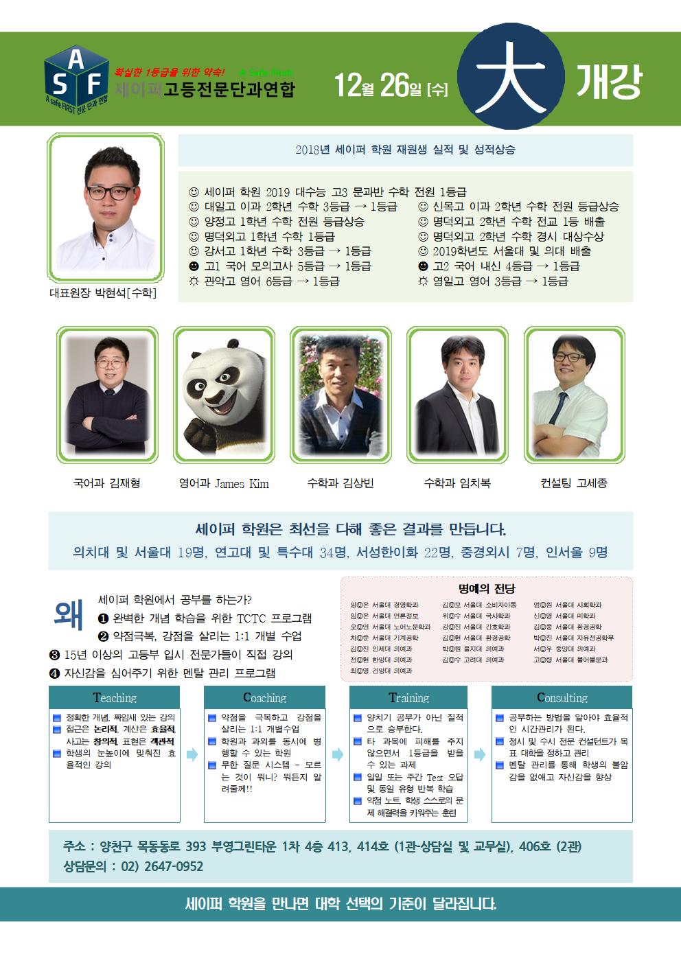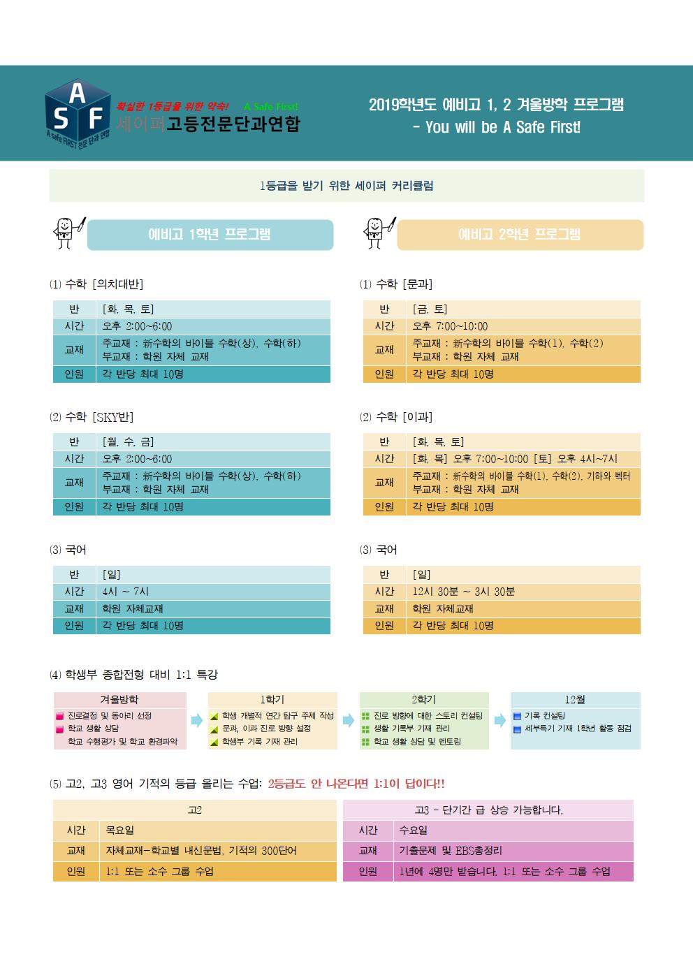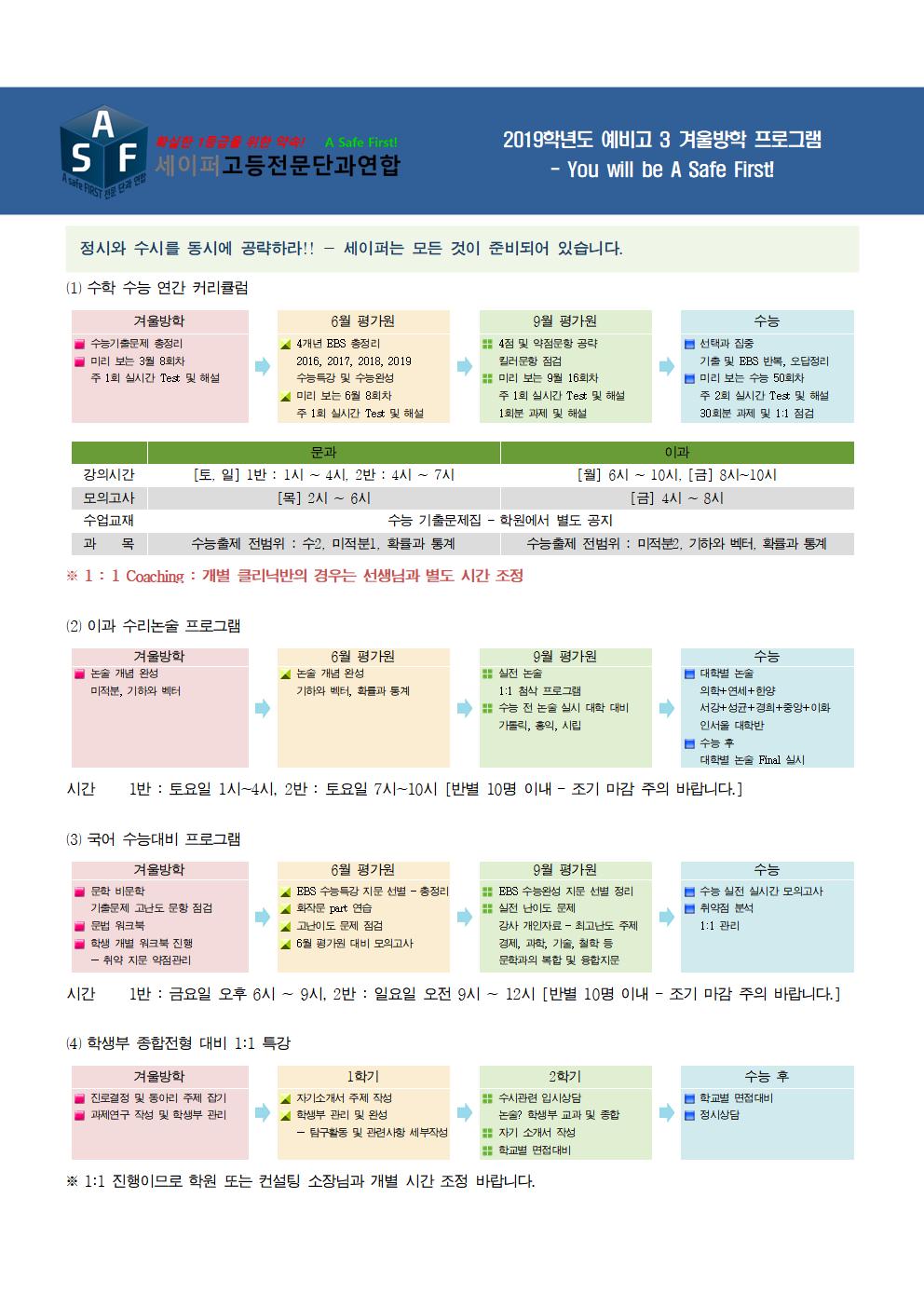 ★[세이퍼 전문단과연합]겨울방학 시간표 예비 고 1,2,3 모집!★