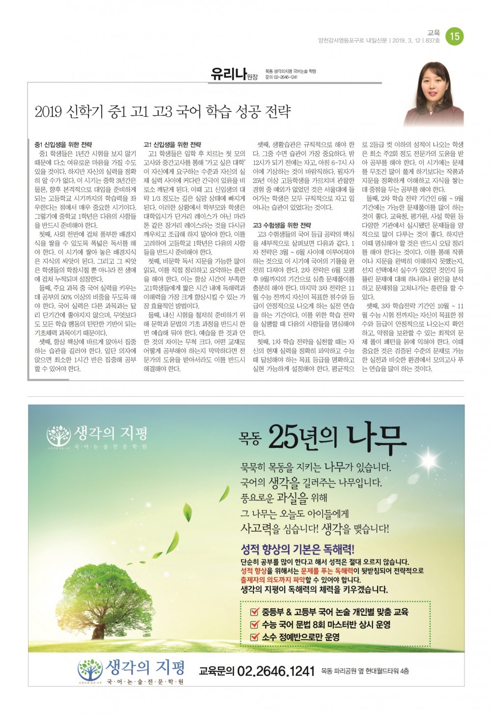 [생각의 지평] "국어의 뿌리부터 열매까지" 국어논술학원 내신반 개강