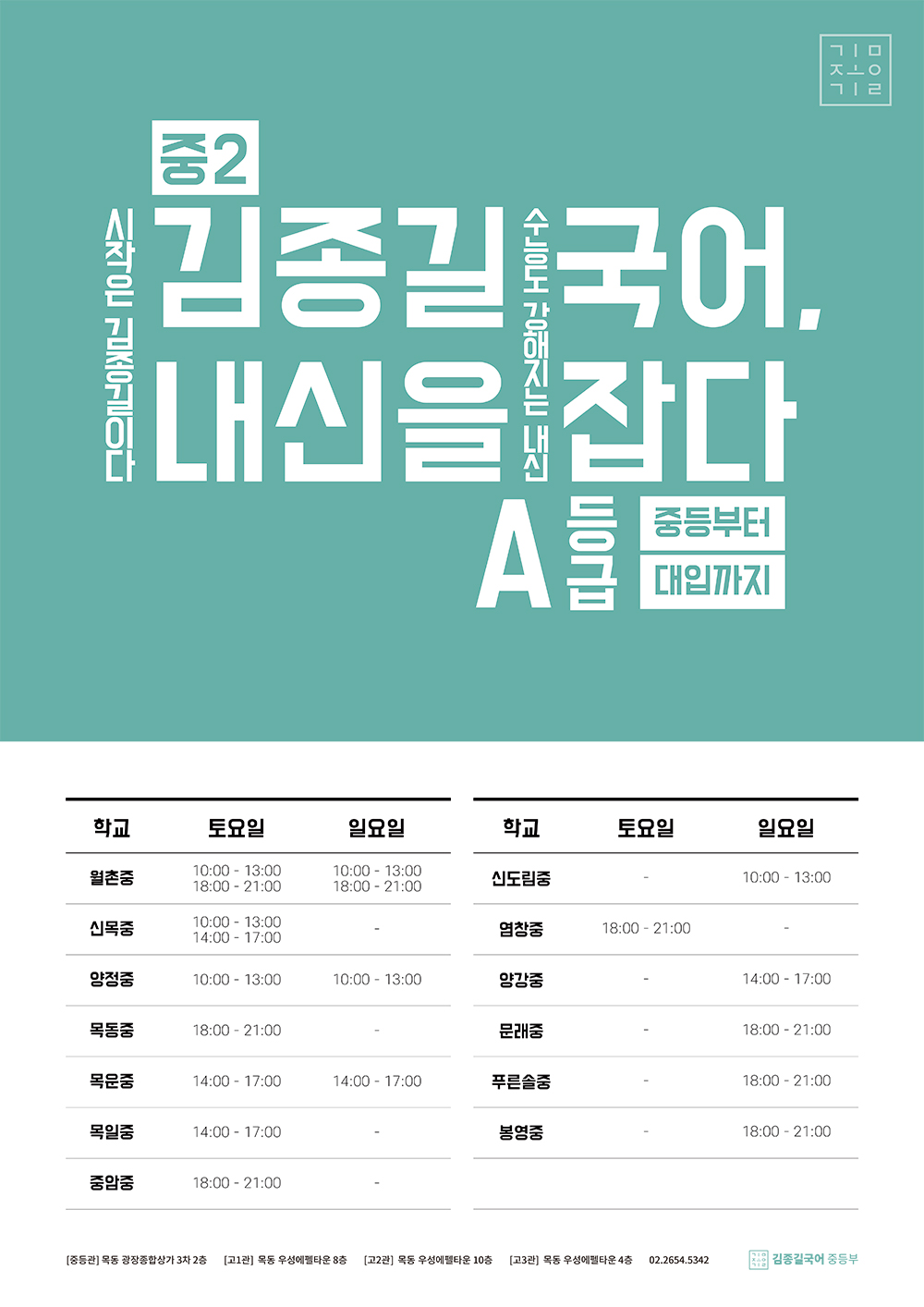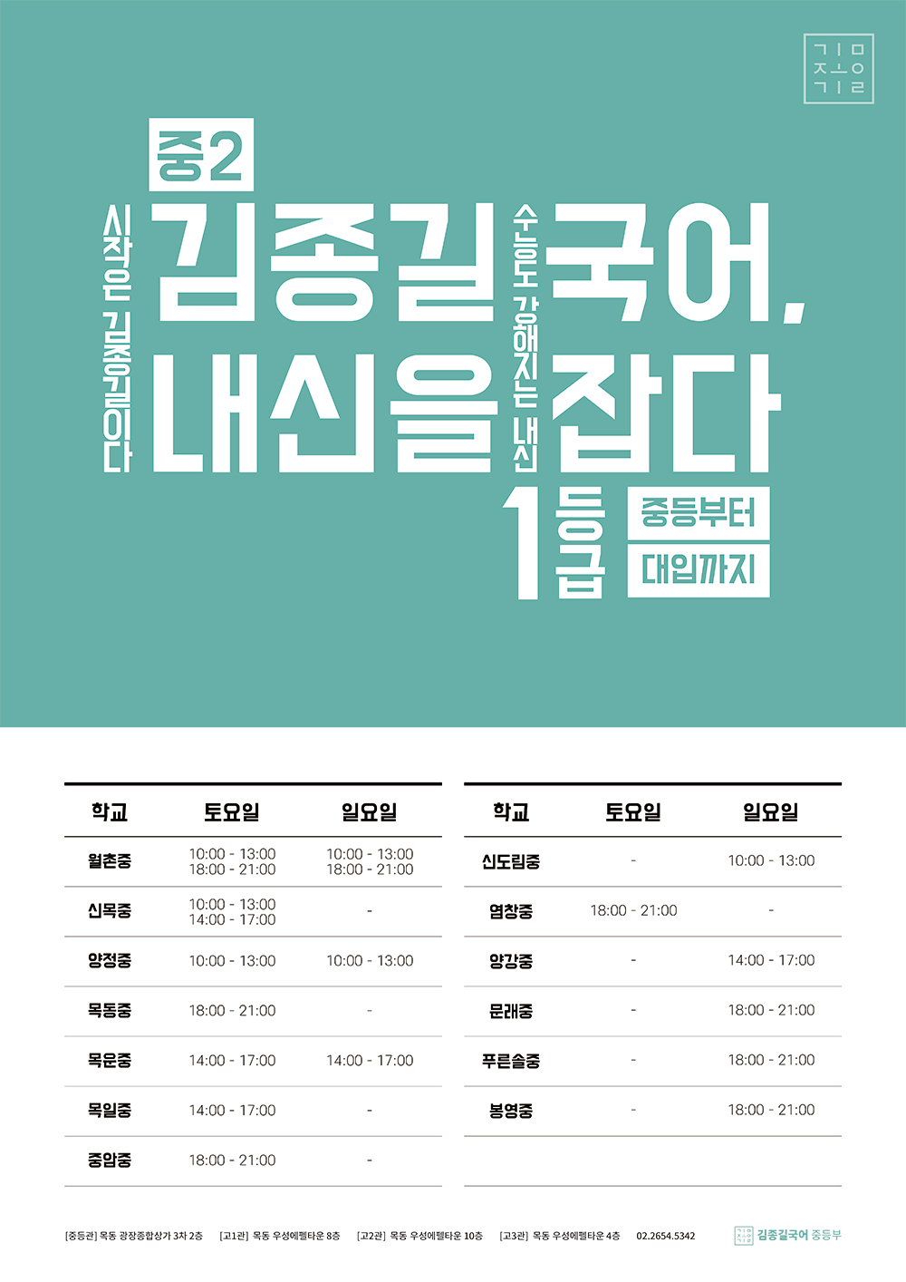 [중2] 김종길 국어, 중등 내신을 잡다!