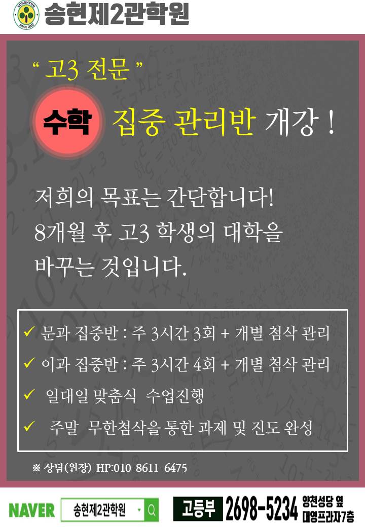 작성자 송현제2관학원 댓글 0건 조회 4,127회 작성일 19-03-16 17:06본문