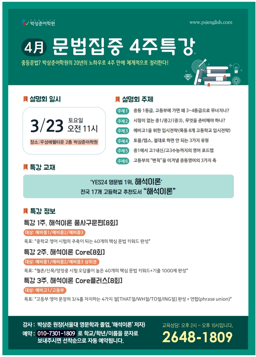 청강 참석을 희망하시는 분은 010-7301-1809로 [학교 / 학년 / 이름 / 청강 날짜]을 문자로 보내주시면 자동 예약됩니다.