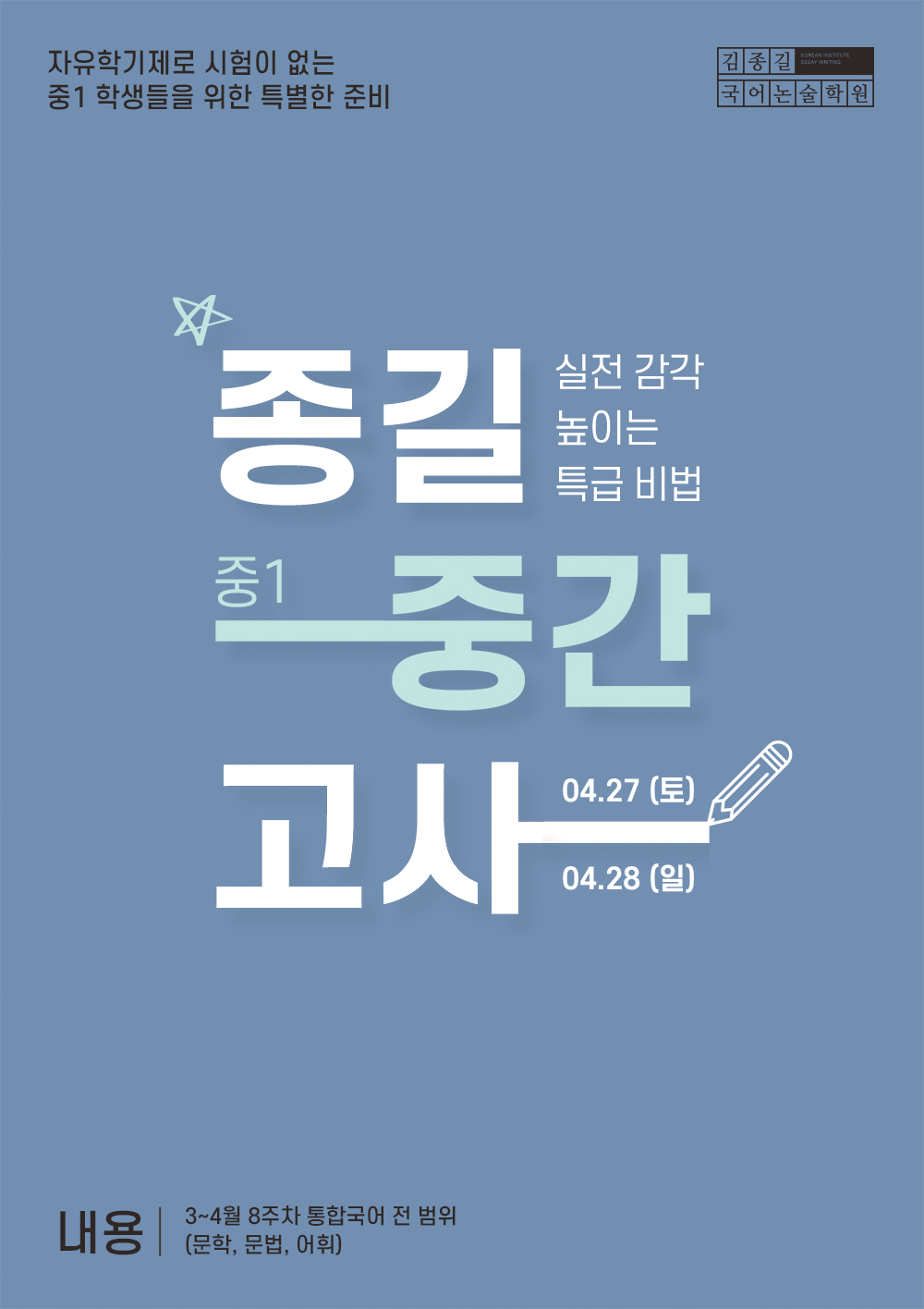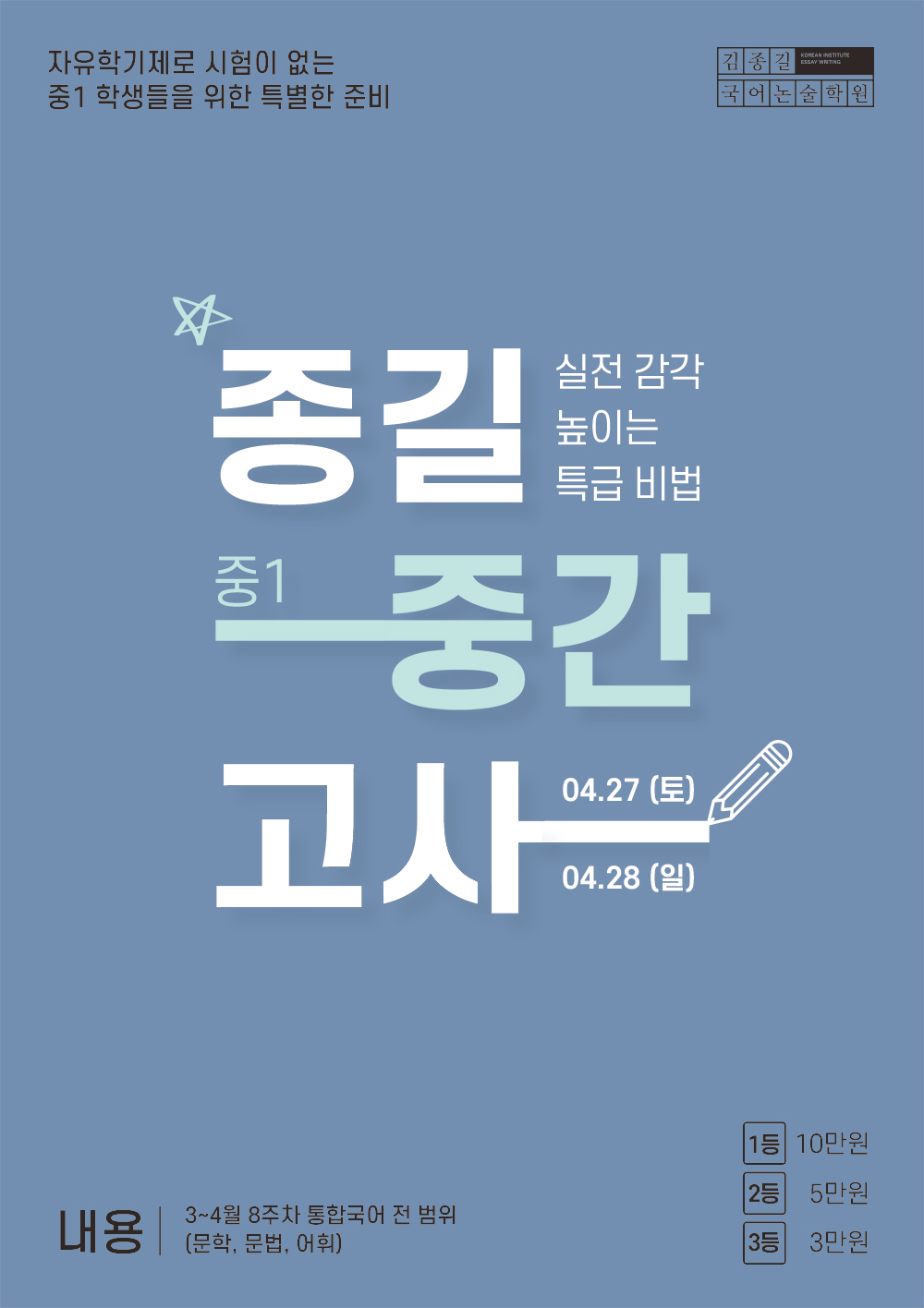 [중1] 실전 감각을 높이는 종길고사! 페이지 정보 작성자 김종길국어중등부 댓글 0건 조회 4,066회 작성일 19-04-17 18:29 본문 학원정보 김종길국어 중등부 02-2654-5342 전화문의 위치 목동서로 49 광장3차 2층 3층 대상 초등 중등 고등 과목 국어 수업목적 영재/특목/자율고 내신/심화/선행 수능 지도보기 관심학원 담기 목록 이전글[중1] 종길 문학상 19.04.17 다음글[국풍2000목동]초등국어(초4~6) 설명회 19.04.17 댓글목록 댓글목록 등록된 댓글이 없습니다.
