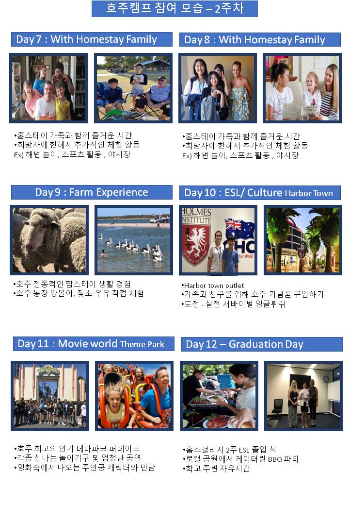 - 대학 기숙사 생활 + ESL 수업 + 즐거운 여행 + 멋진 다양한 오후 교육 및 액티비티
