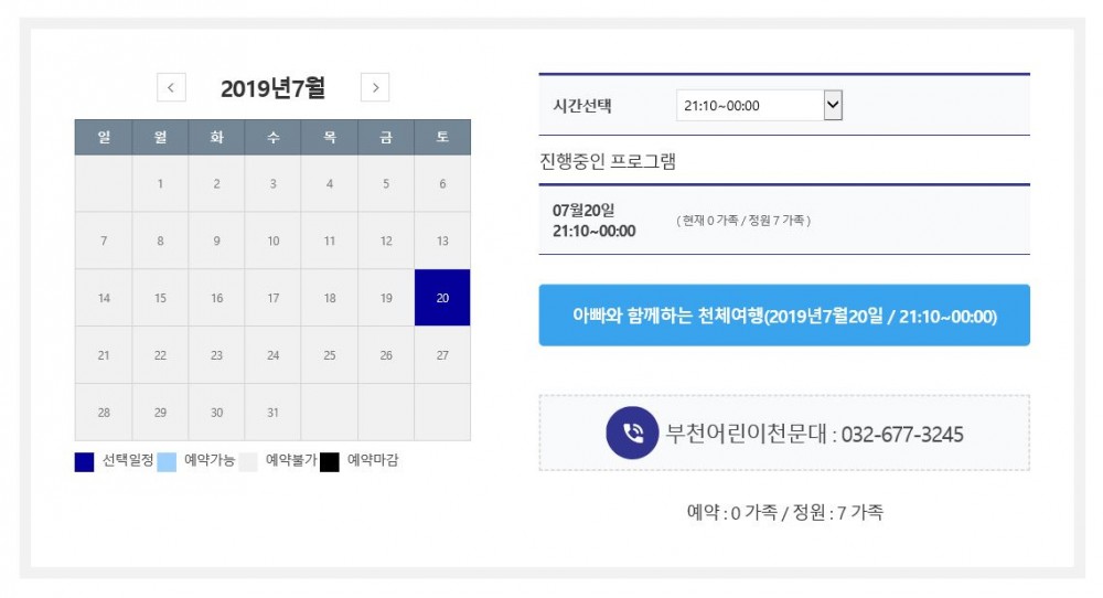 2. 예약페이지에서 지점선택은 `부천`, 프로그램 선택은 `아빠와 함께하는 천체여행`을 선택해주세요.