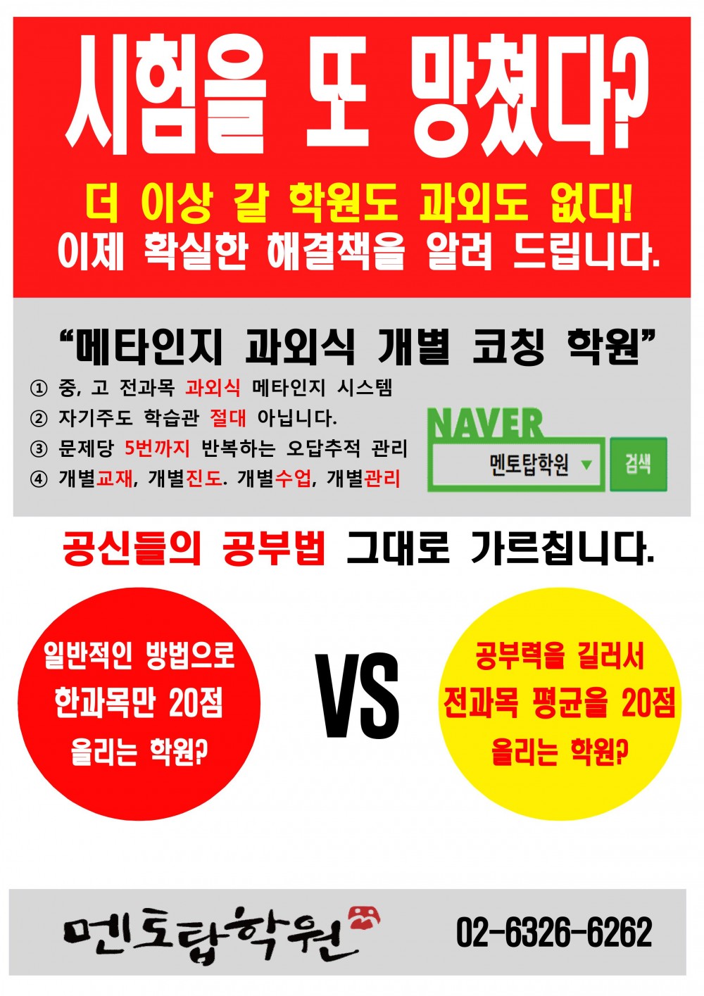 학습 방법을 모르는 학생들은 멘토탑학원으로 오세요.