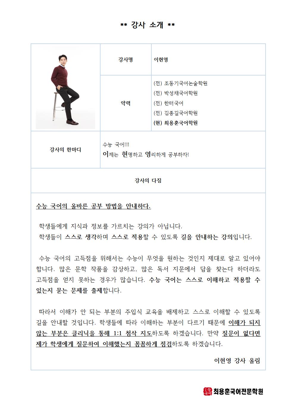 ◈ 연사 : 최용훈 원장 / 학년별 강사진