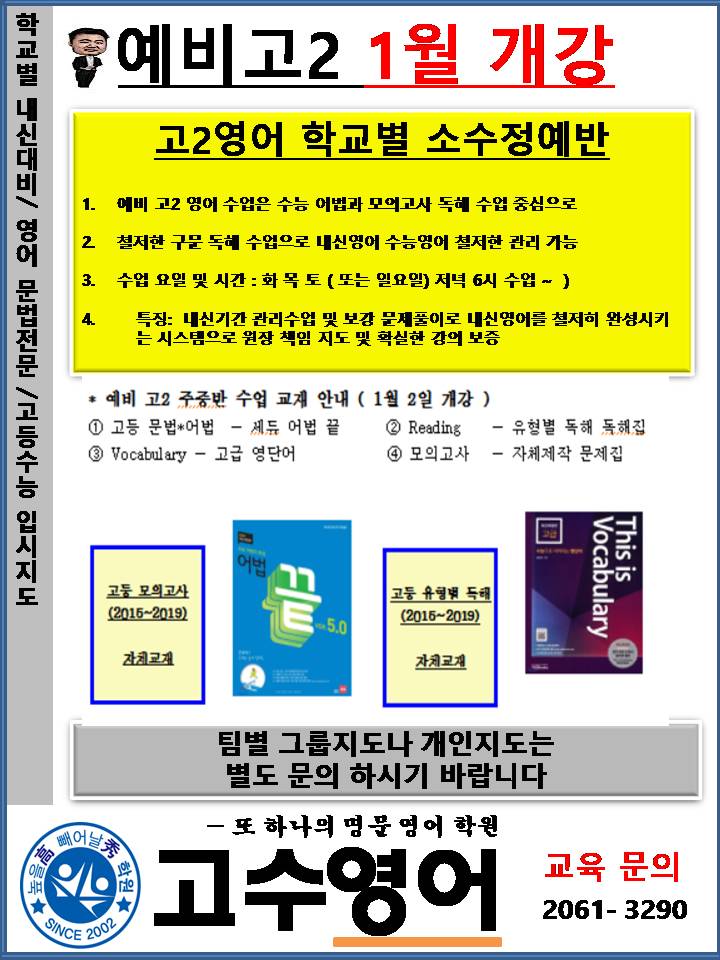 고수영어 매일 특강 학년별 안내 상담 문의 02-2061-3290