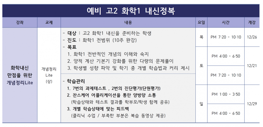 [이찬화과학학원] Vision 2020 겨울개강 고2안내