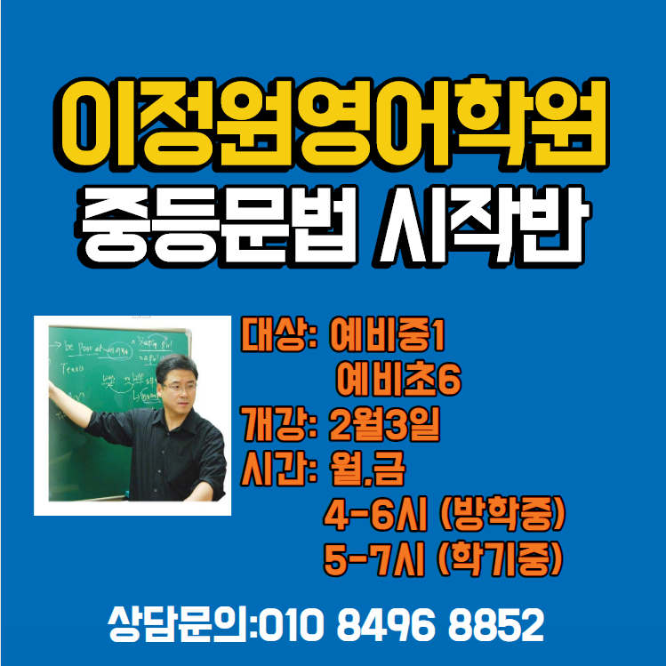 이정원 영어 중등문법 시작반 페이지 정보 작성자 이정원영어학원 댓글 0건 조회 4,177회 작성일 20-01-21 22:05 본문 학원정보 이정원영어 02-2650-8852 전화문의 위치 양천구 신정동 321 6센트럴프라자 6층 대상 중등 고등 과목 영어 수업목적 내신/심화/선행 수능 지도보기 관심학원 담기 목록 이전글[거산학원] 초등5, 6 / 중1을 위한 봄방학 특강 20.01.22 다음글[거산학원] 올바른 수학학습법과 학부모의 역할! 1월 31일 설명회에 초청드립니다. 20.01.21 댓글목록 댓글목록 등록된 댓글이 없습니다.