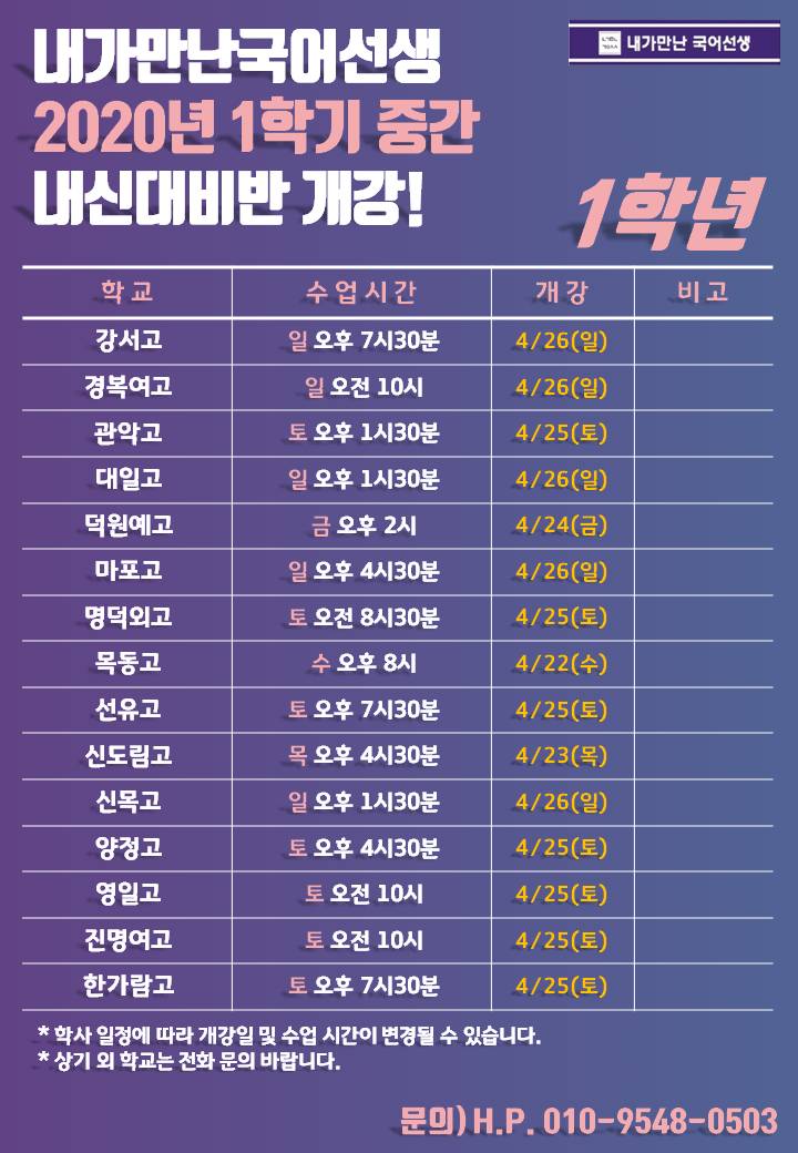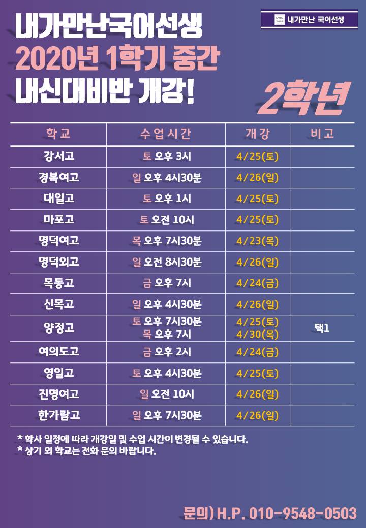 내신대비 신청 및 문의사항은 010-9548-0503으로 연락주세요.^^
