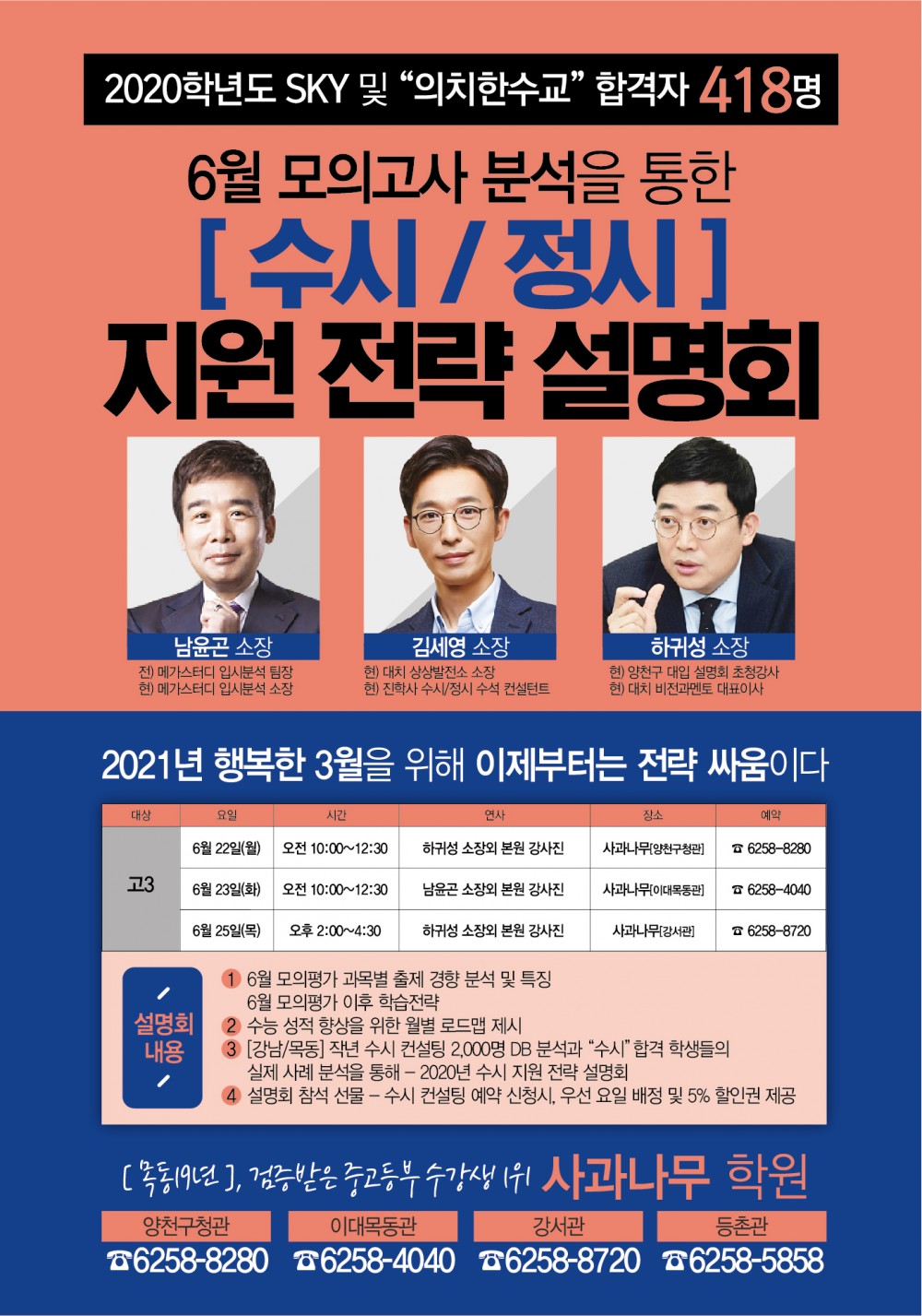 [사과나무학원] 고3_6월 모의고사 분석을 통한 수시/정시 지원 전략 설명회[긴급!]