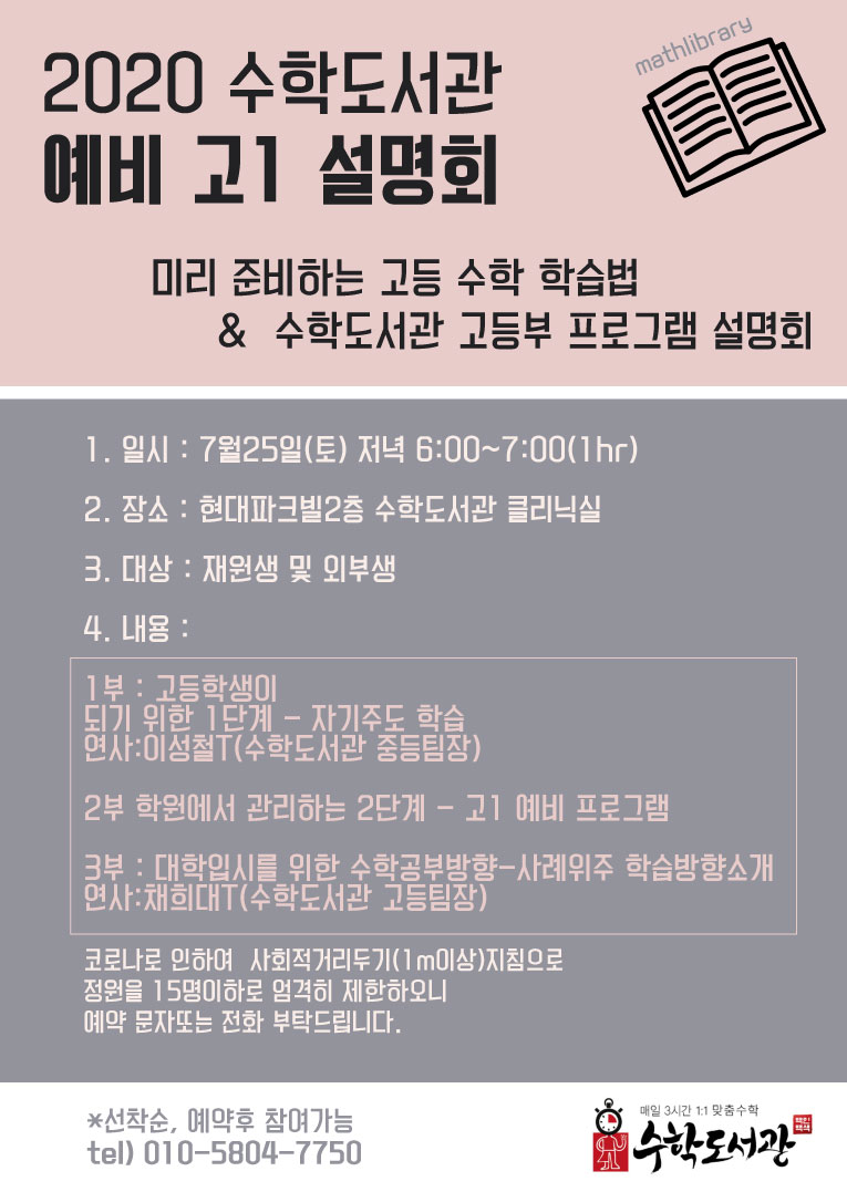 [수학도서관] 예비고1 설명회 -미리 준비하는 고등수학 / 고등부 프로그램 설명회 / 대학입시를 위한 수학공부방향 길잡이