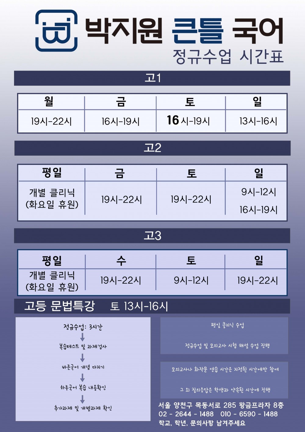 [박지원 큰틀 국어] 중등부 고등부 개강 안내