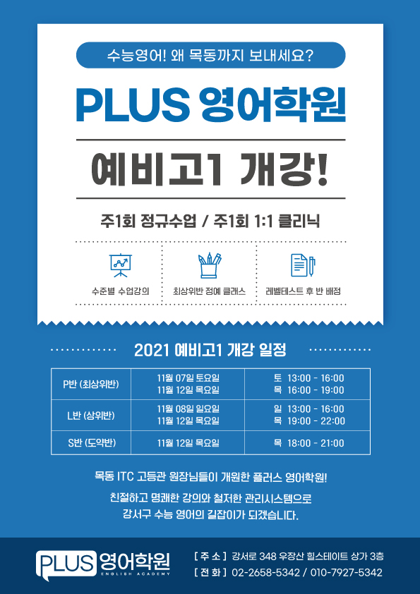강서구 대표 영어학원 플러스 영어학원 입니다.