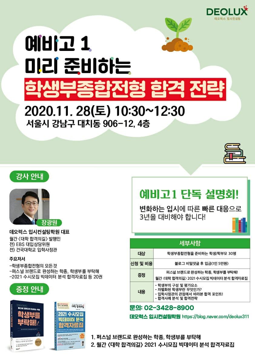 [설명회] 예비고1, 미리 준비하는 학생부종합전형 합격 전략 설명회 _ 2020.11.28(토)