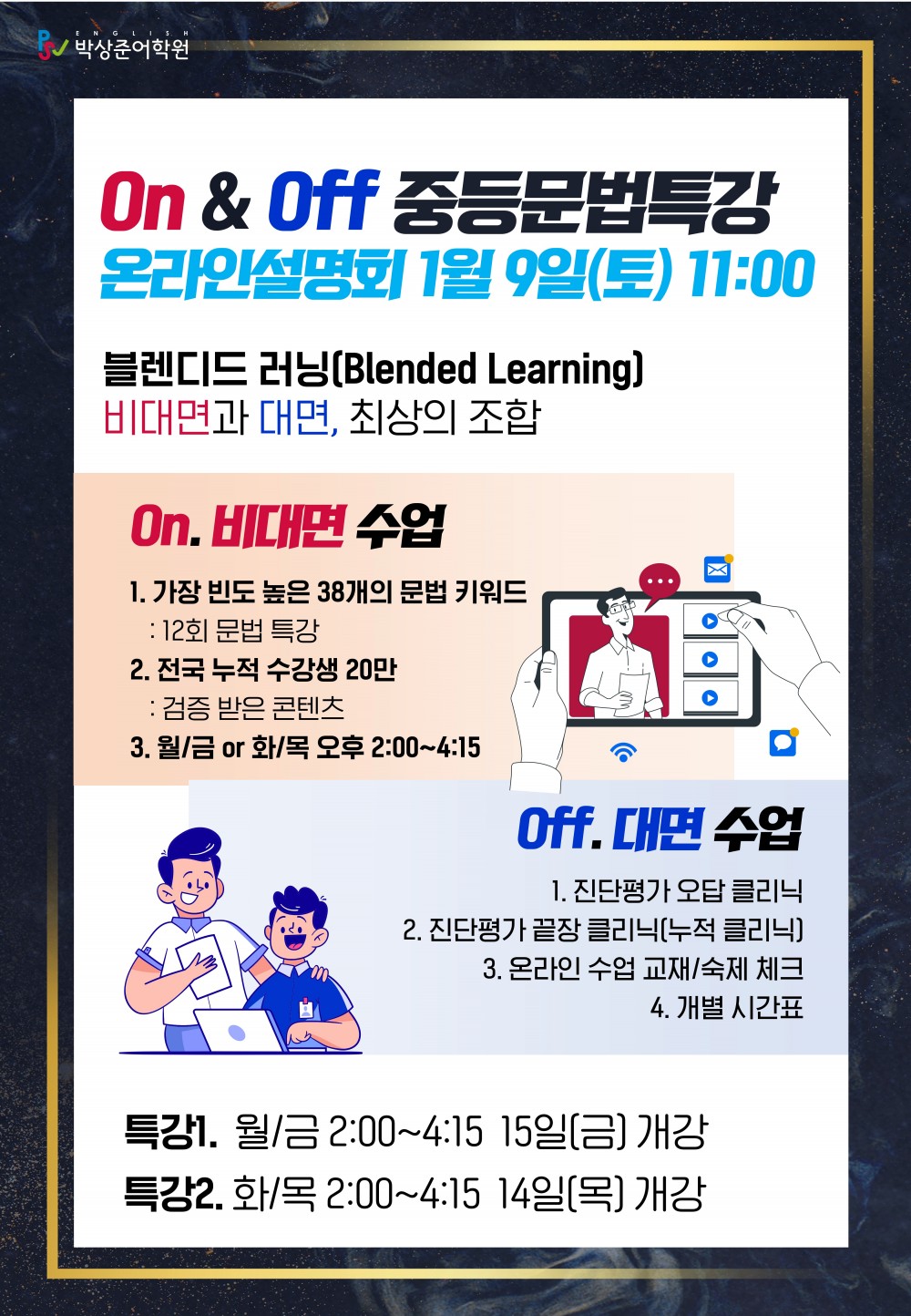 [박상준어학원]■On & Off중등문법특강(12회)■ 대면과 비대면의 최상의 조합!