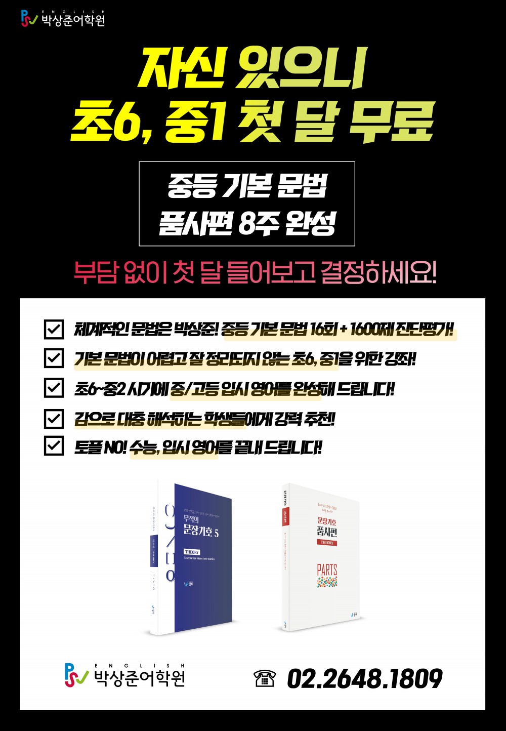 [박상준어학원] 초6 첫 달 무료, 중1 첫 달 무료 / 중등 기본문법 8주완성