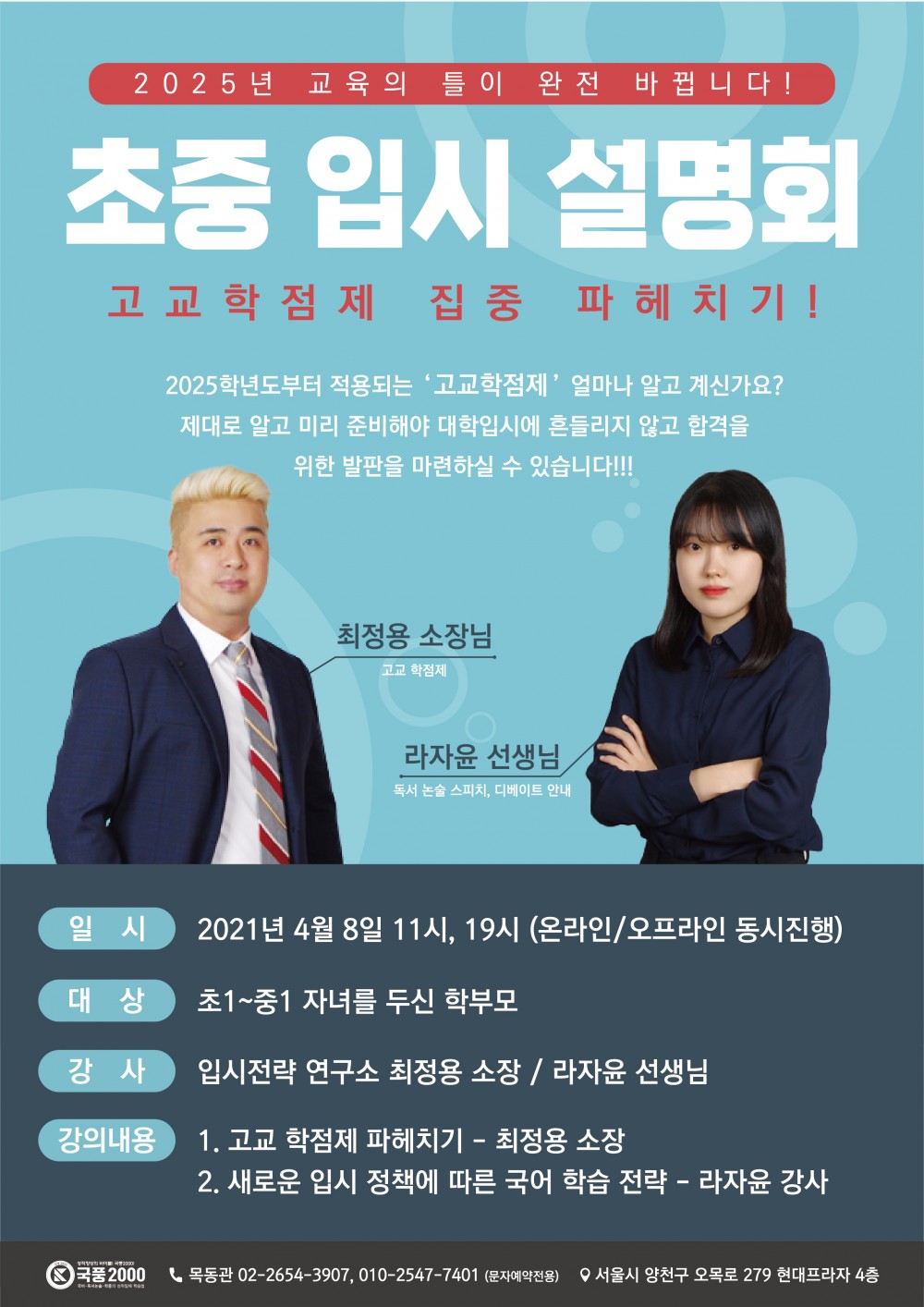 1. 프리미엄 국어교육 브랜드 국풍2000에서 초등부, 중1 입시설명회를 개최합니다~!