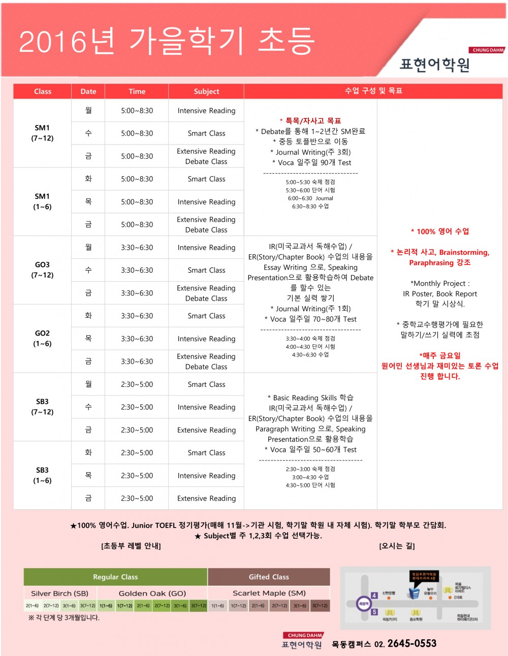 목동표현어학원 초등부 시간표 페이지 정보 작성자 표현어학원 댓글 0건 조회 4,448회 작성일 16-08-11 20:26 본문 학원정보 청담표현어학원 02-2645-0553 전화문의 위치 양천구 오목로 279 현대프라자 4층 대상 초등 중등 과목 영어 수업목적 영재원/국제중 영재/특목/자율고 내신/심화/선행 수능 유학 지도보기 관심학원 담기 목록 이전글목동표현어학원 중등부 시간표 16.08.11 다음글성대경시 파이널 9월3일 개강 16.08.11 댓글목록 댓글목록 등록된 댓글이 없습니다.