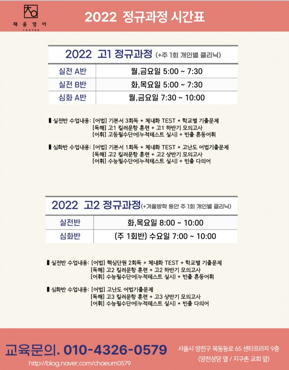<영어의 빈틈을 밀착해서 채워주는 소수정예 고등영어 – 2022학년도 고1, 고2 개강안내>