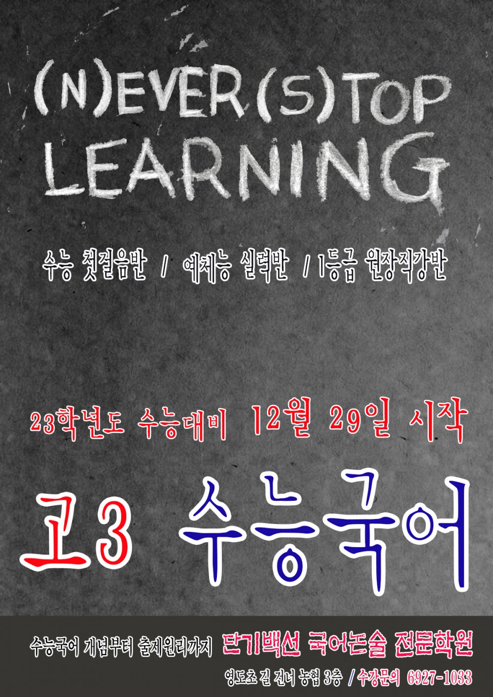 [단기백선 국어학원] 예비 고3 <수능 첫걸음반>, <예체능 실력반>, <1등급 원장직강반>개…