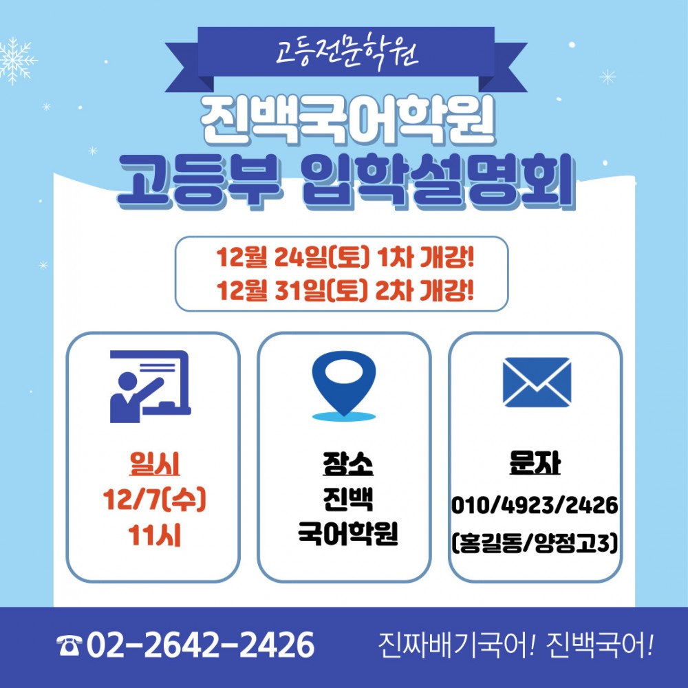 진백국어] 고등부 입학 설명회 안내 / 예비고1, 고2, 고3