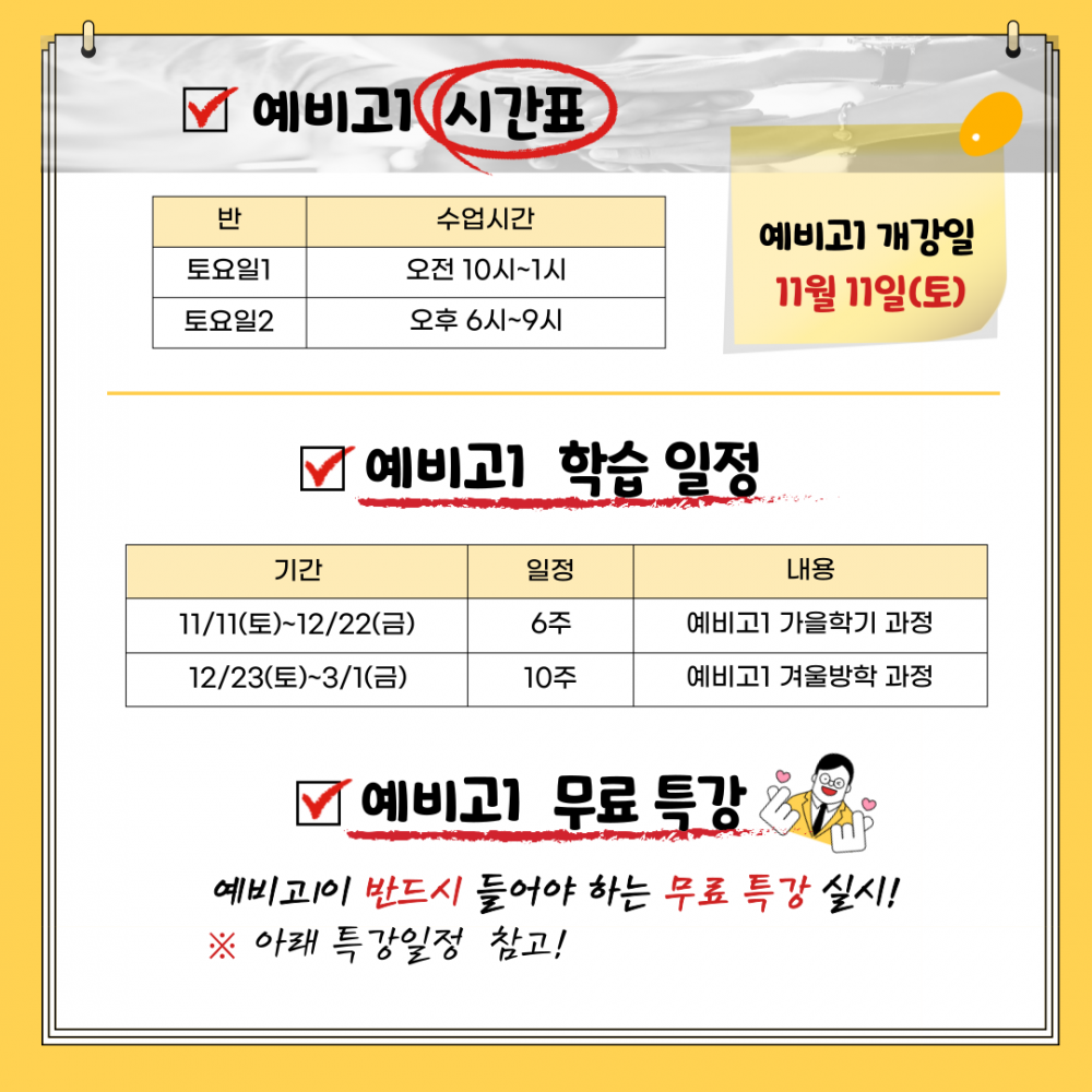 ※ 예비고1 신규 개강: 11/11(토)