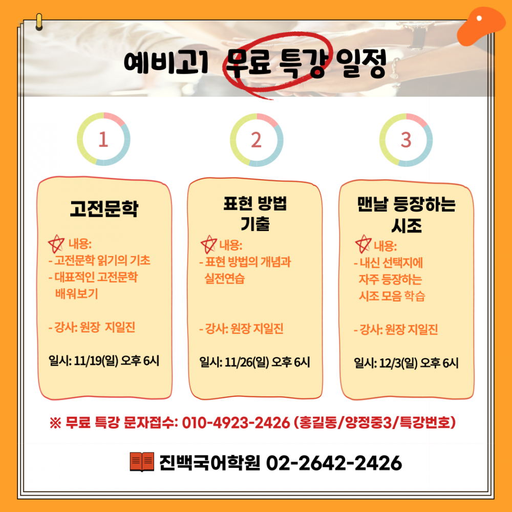 ※ 무료 특강 문자접수: 010-4923-2426 (홍길동/양정중3/특강번호)