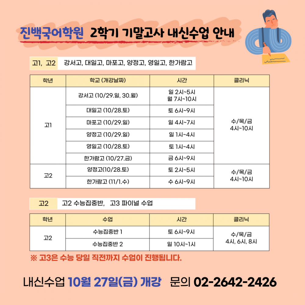 고2 | 양정고(10/28.토) | 토 2시~5시 | 수/목/금 4시~10시 |